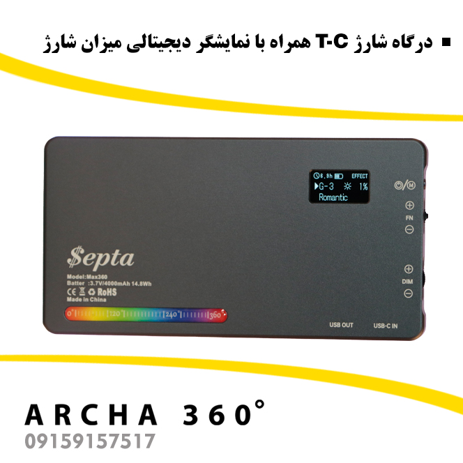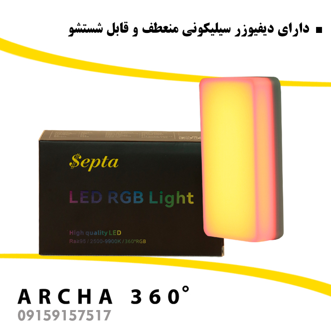 *دامنه نور 2500K-9900K با قابلیت تنظیم شدت نوردهی